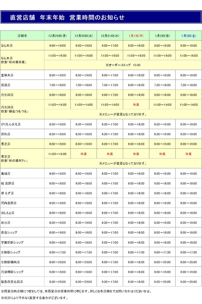 > 【直営店舗】年末年始 営業時間のお知らせ