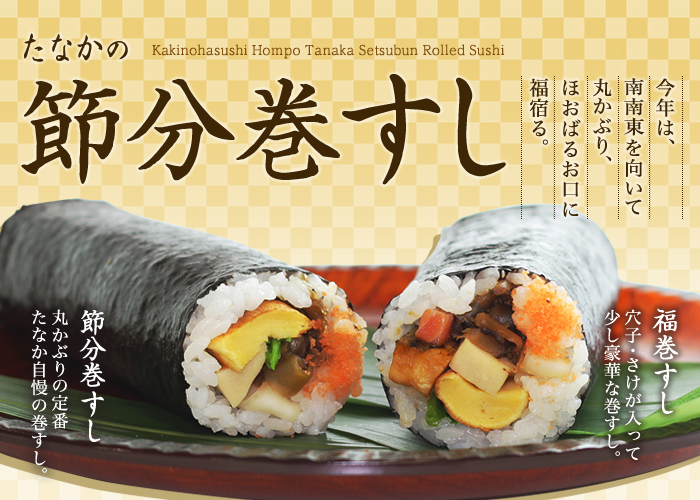 今年も節分の時期がやってまいりました。今年の恵方は「南南東」。たなかのこだわり巻すしで福を迎えましょう♪