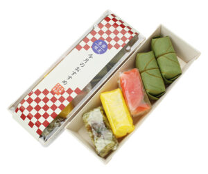 (柿の葉すし さば・えび各1個、五条楽 紅笹・春菜・八汐各1個)
