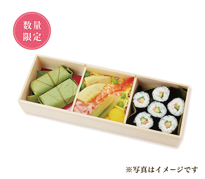 柿の葉すしと細巻とミニちらしの詰合せです。数量限定でお買い求めいただけます。
